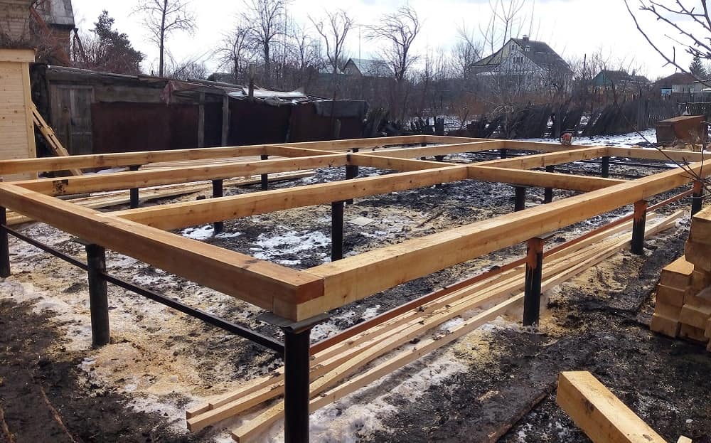 Шаг 2. Нижняя обвязка и монтаж пола.